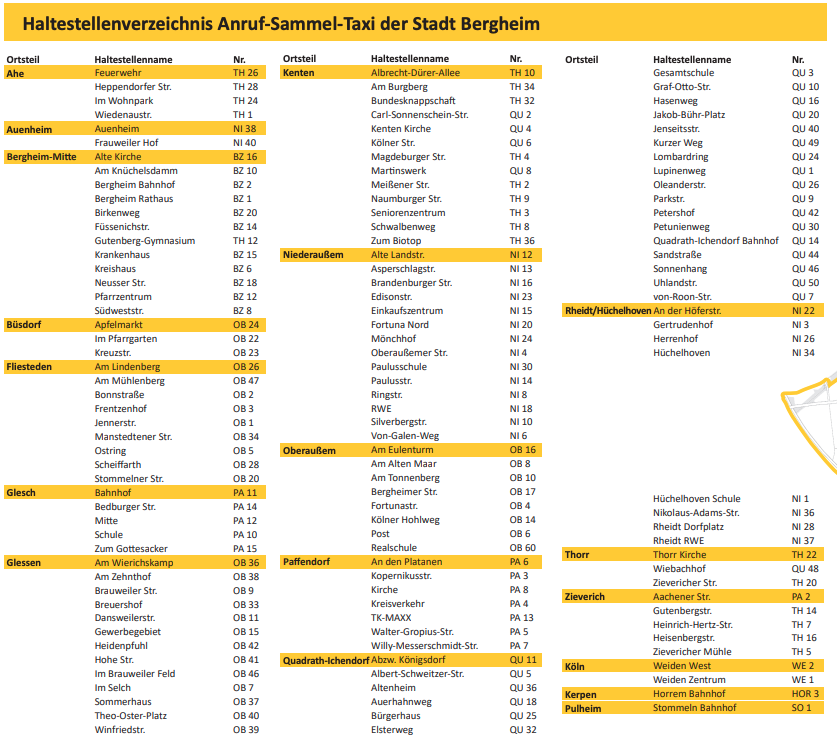 Liste aller AST-Einstiegsstellen für Bergheim: