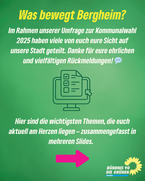 Im Frühjahr 2025 haben wir eine Umfrage in Bergheim durchgeführt, um die Perspektiven, Wünsche und Herausforderungen der Bürger*innen zu erfahren. Insgesamt haben 58 Menschen teilgenommen und Einblicke in ihr Wohnumfeld, ihre Bedürfnisse und Ideen für eine lebendigere Stadt gegeben
