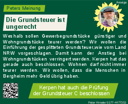 Wir fordern die Einführung der gesplitteten Grundsteuer, wie sie das Land NRW vorschlägt. Dieses Modell könnte den starken Anstieg der Wohnkosten abfedern und für eine gerechtere Verteilung sorgen – ein Schritt, den die Stadt Kerpen bereits gegangen ist.